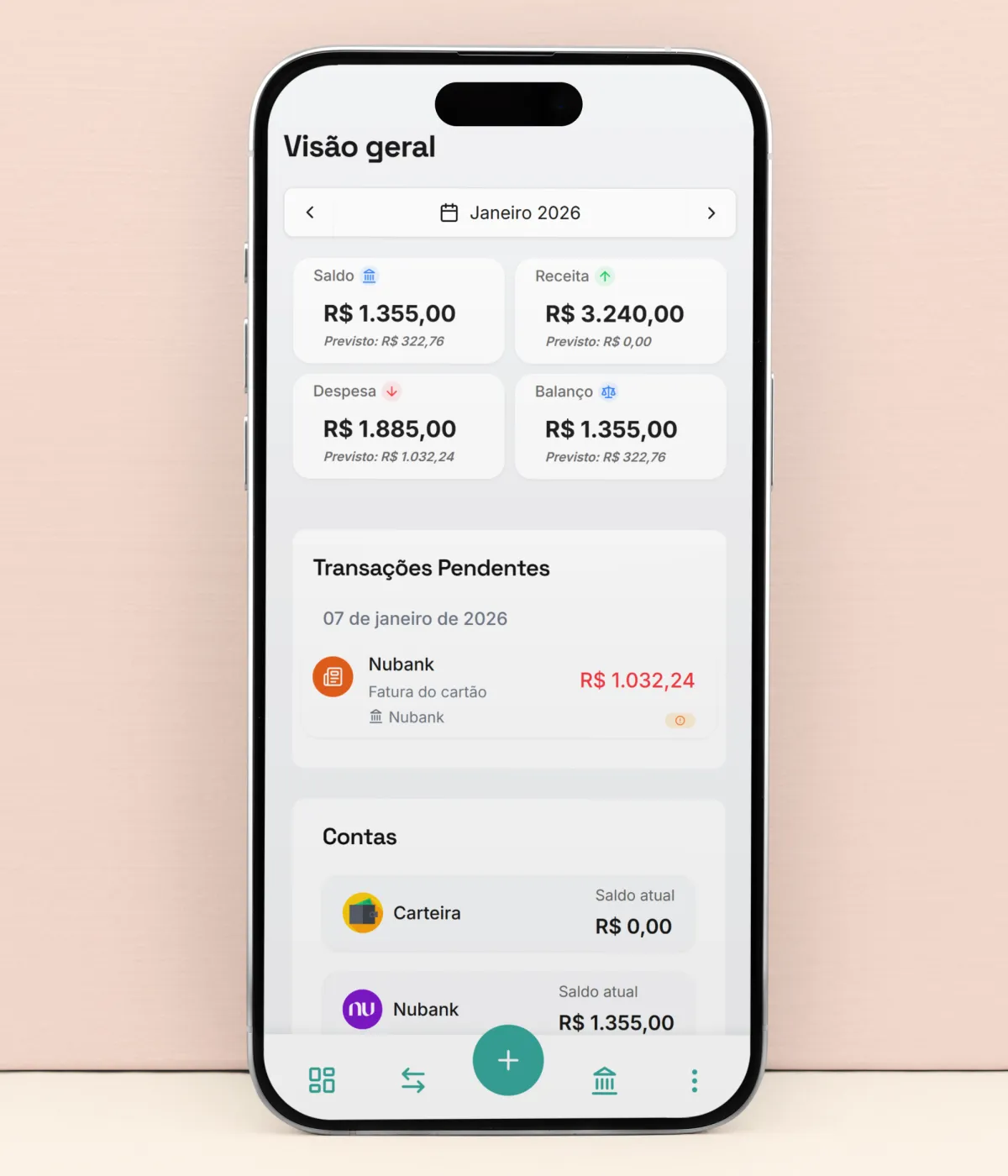 Veja seu saldo atual e o valor previsto até o fim do mês, sem planilhas e sem achismo.